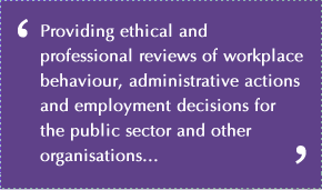 We can also provide advice on ethics, probity and the like; provide mediation services; and can chair panels where an individual has appealed against a personnel management decision relating to discipline or similar because of unacceptable behaviour.